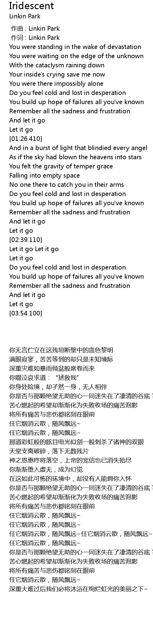 | [00:01.00] | 作词 : Linkin Park |