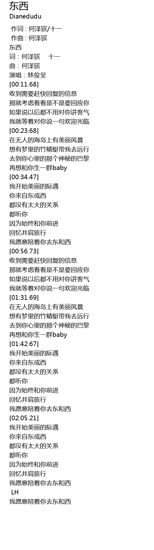 | [00:00.000] | zuò cí : hé zé bīn shí yī |