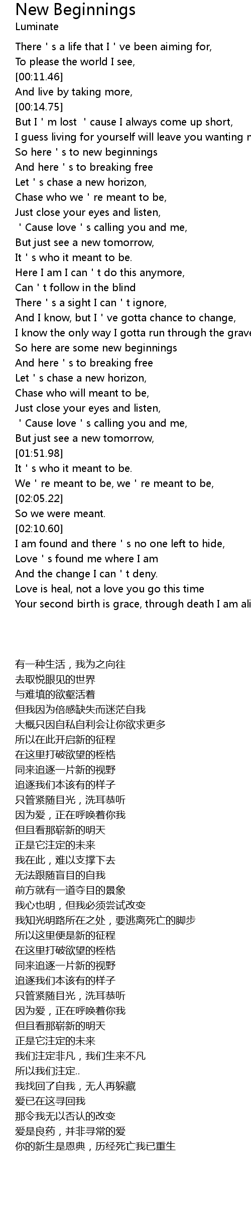 | [00:30.65] | So here s to new beginnings |