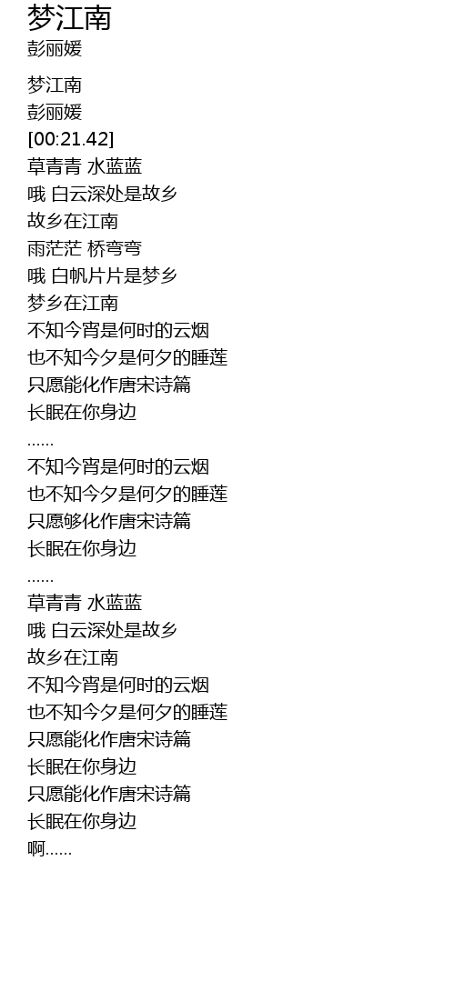 | [00:10.98] | 梦江南 |