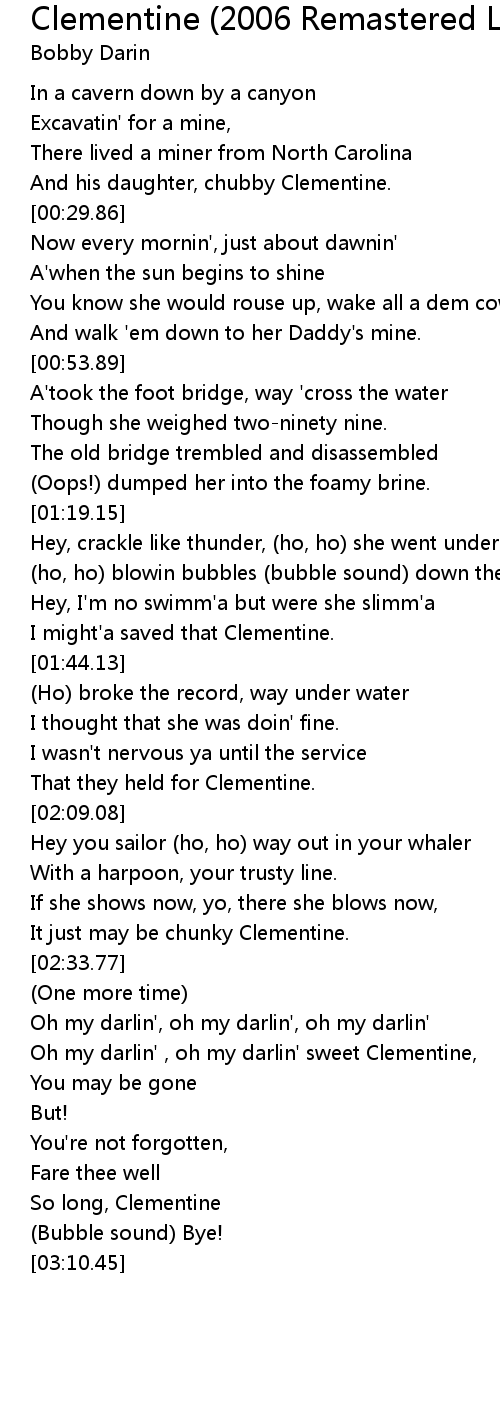 Oh my darlin' , oh my darlin' sweet Clementine, |