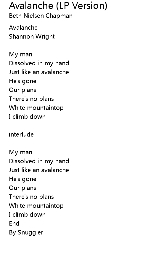 | Song | Avalanche (LP Version) |
