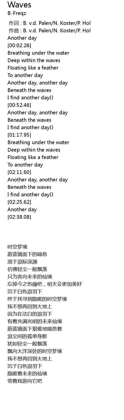 | [00:00.000] | 作词 : B. v.d. Palen/N. Koster/P. Hol |