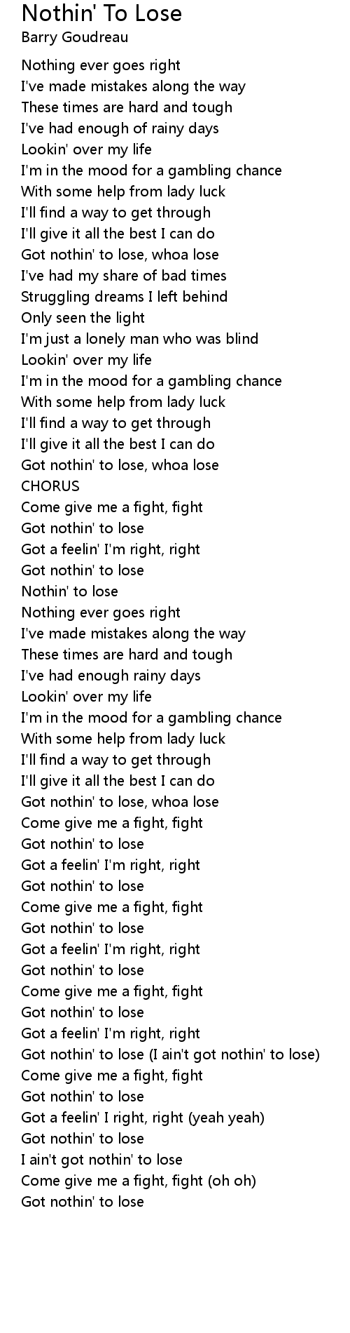 Got nothin' to lose (I ain't got nothin' to lose) |