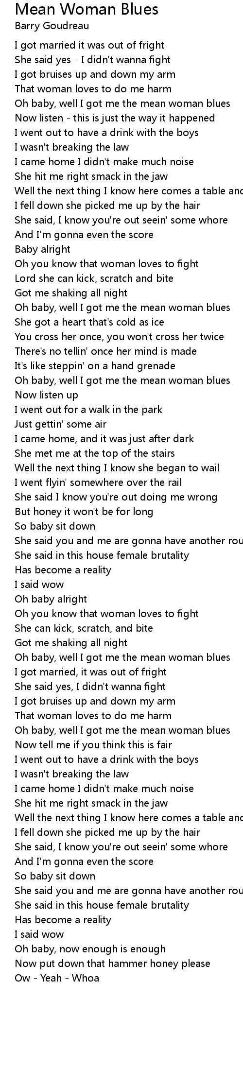 Oh baby, well I got me the mean woman blues |