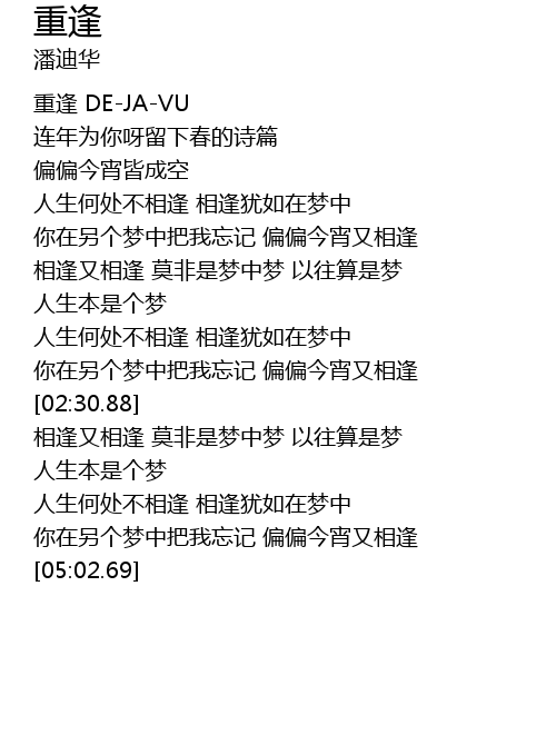 | [00:00.00] | 重逢 DE-JA-VU |