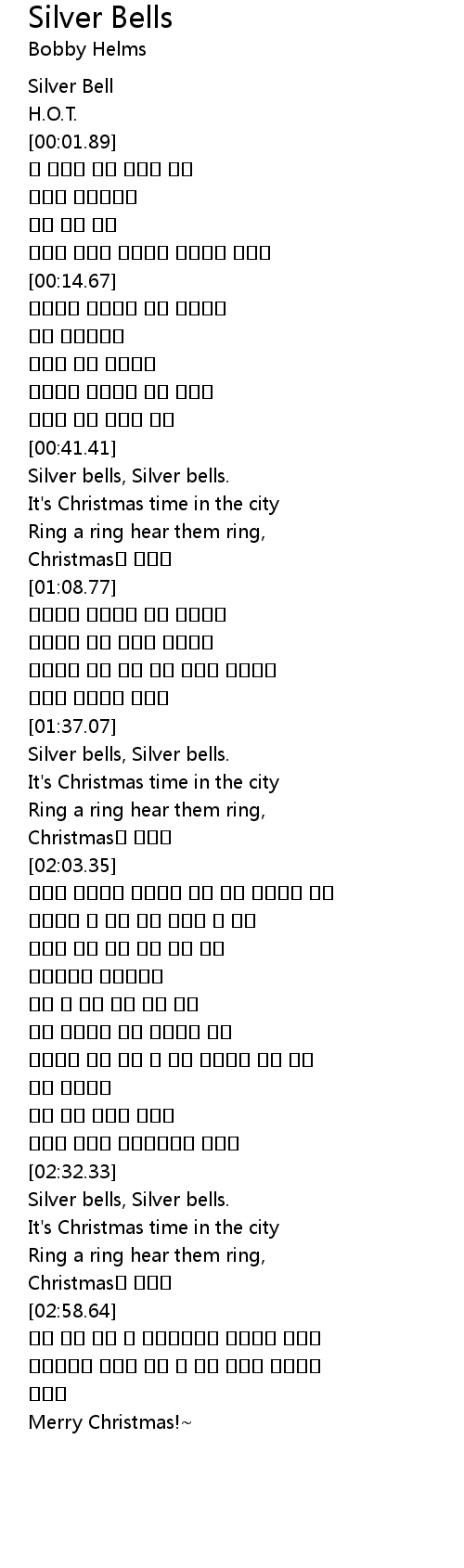 | [02:32.81] | Silver bells, Silver bells. |