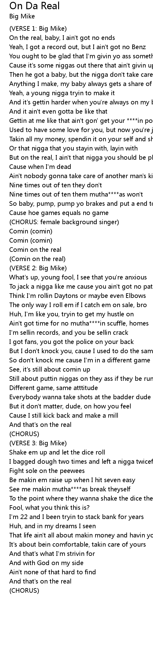 Comin on the real |