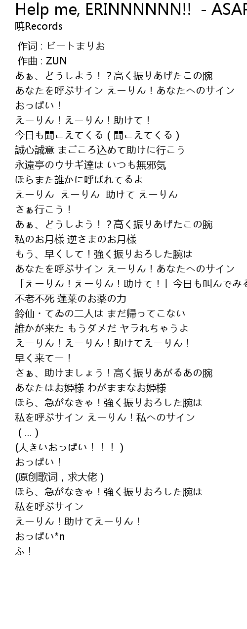 | [01:42.465] | えーりん!えーりん!助けてえーりん! |
