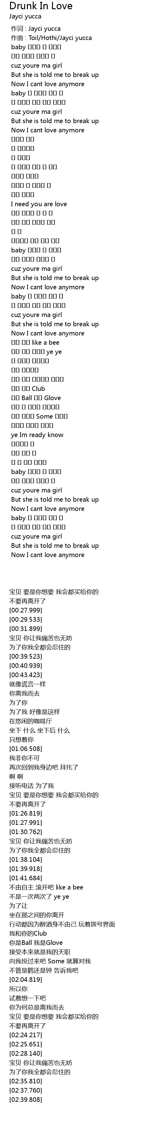 | [00:00.000] | 作词 : Jayci yucca |