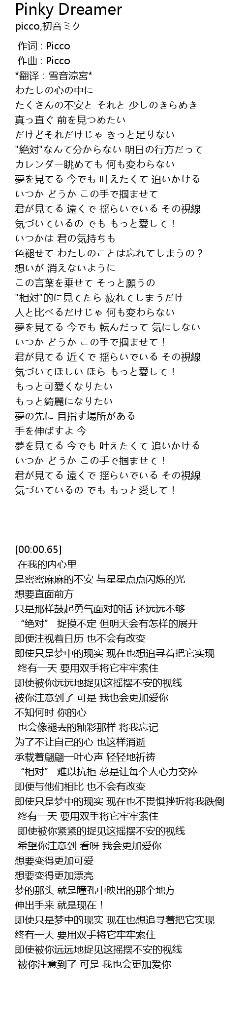 | [00:00.000] | 作词 : Picco |