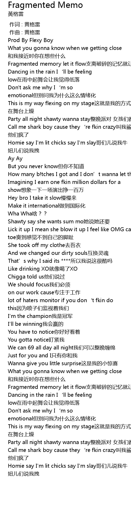 | [01:47.915] | Call me shark boy cause they' re fkin crazy jiao wo sha yu nan hai ta men feng le |