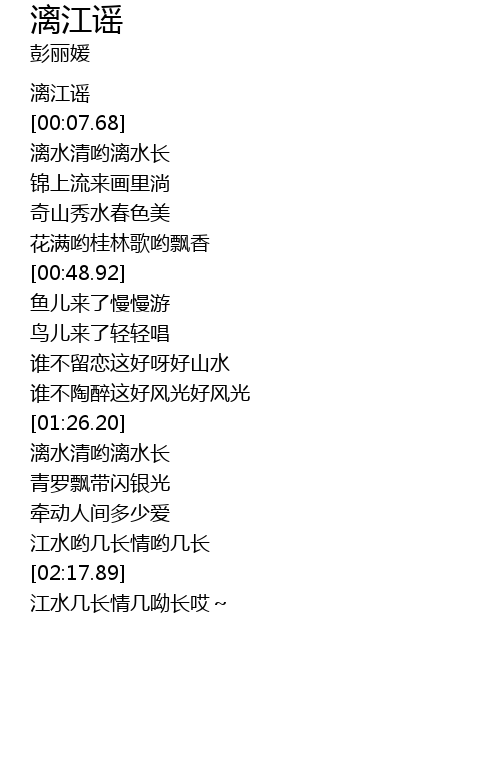| [00:12.86] | lí shuǐ qīng yō lí shuǐ zhǎng |