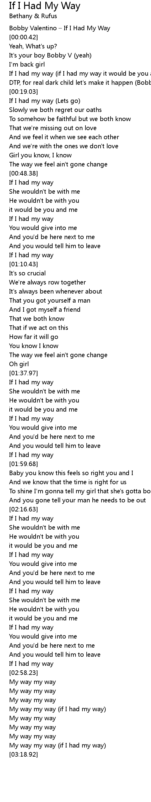 | [03:15.54] | My way my way (if I had my way) |