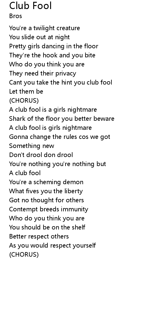 | A club fool is girls nightmare | |