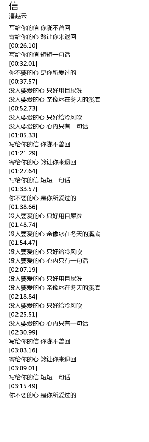 | [00:26.61] | xiě gěi nǐ de xìn duǎn duǎn yī jù huà |