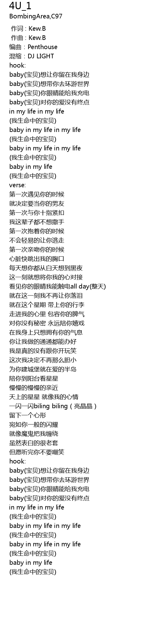 | [01:33.160] | baby(宝贝)想让你留在我身边 |
