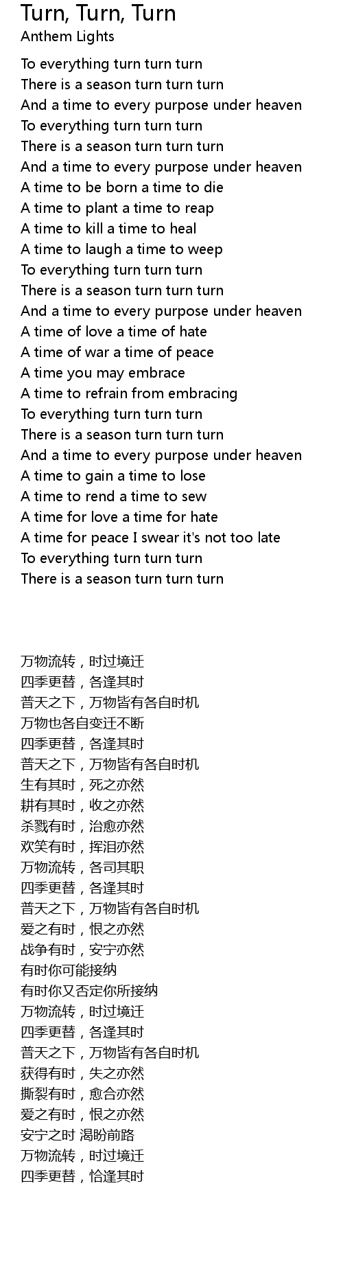 To everything turn turn turn |