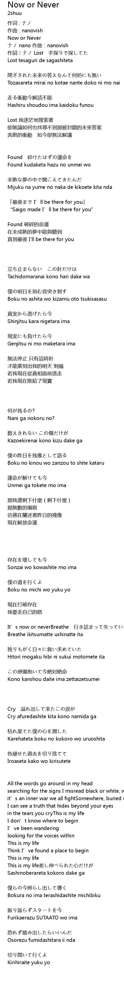 | 作詞︰ナノ Lost 手探りで探してた | |
