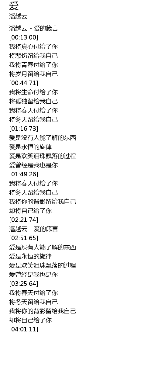 | [00:02.00] | 潘越云 - 爱的箴言 |