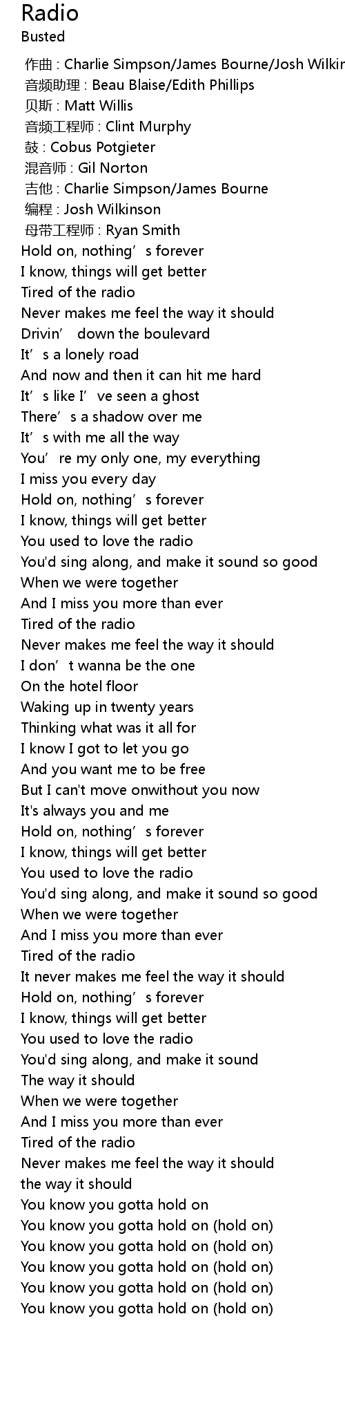 | [01:05.00] | Tired of the radio |