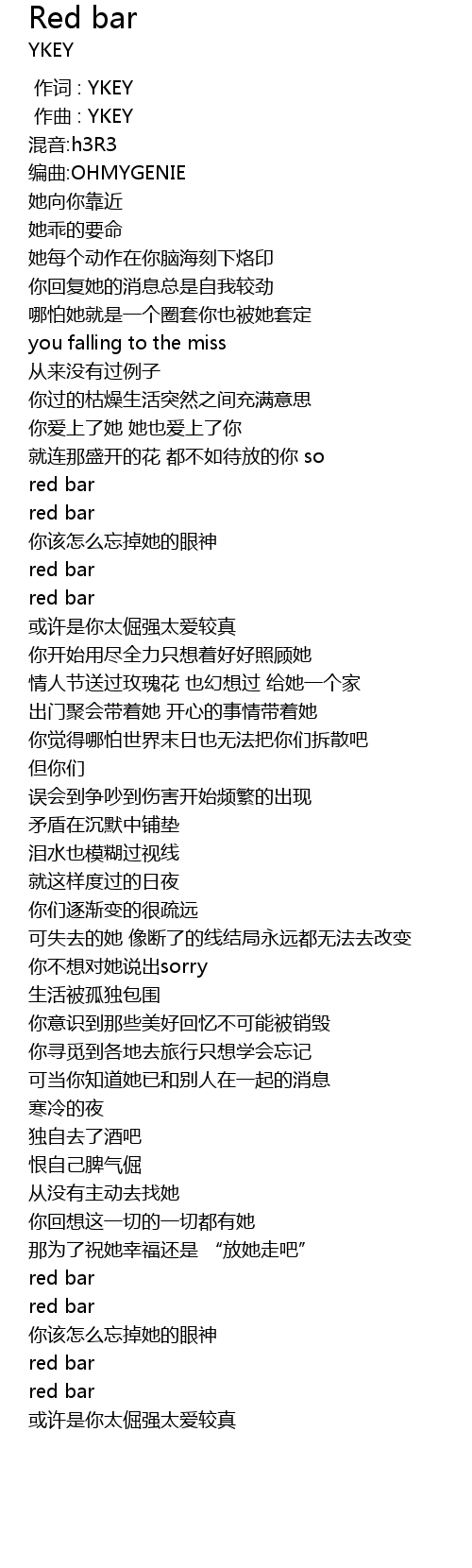 | [00:00.000] | 作词 : YKEY |