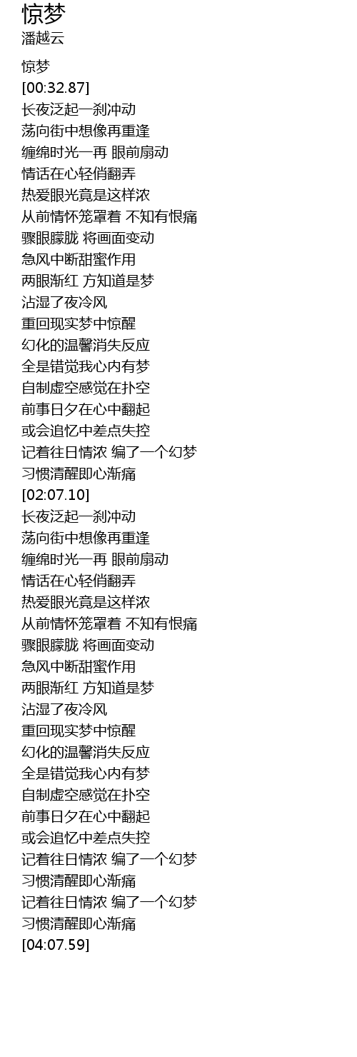 | [03:55.45] | 记着往日情浓 编了一个幻梦 |