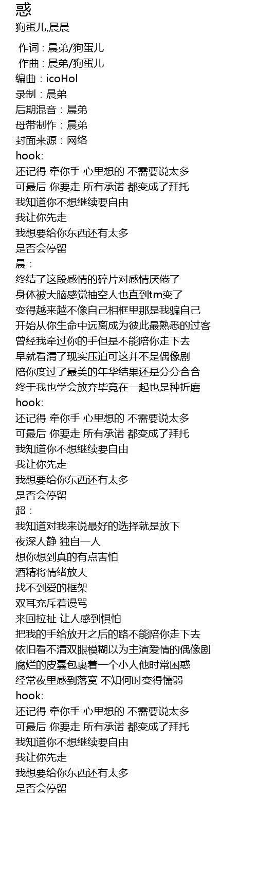 | [00:00.000] | 作词 : 晨弟/狗蛋儿 |