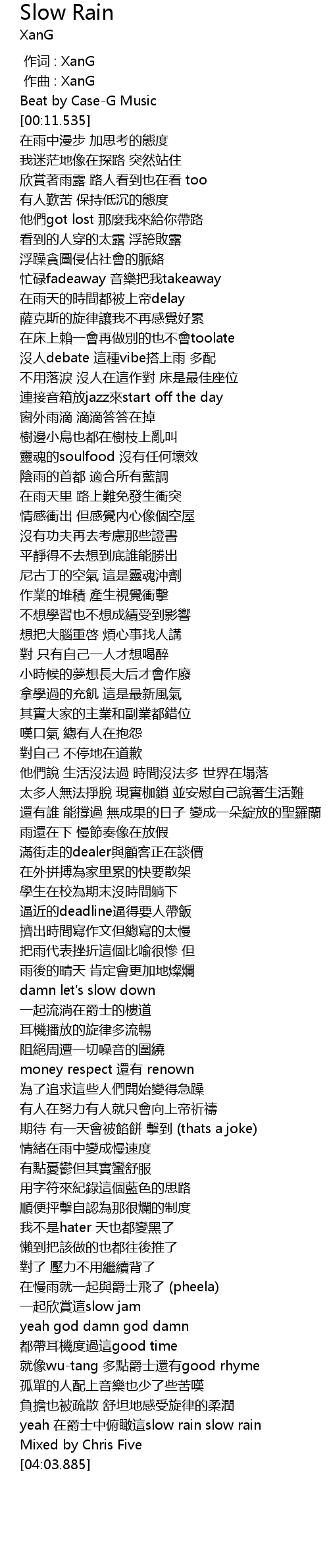 | [03:57.196] | yeah 在爵士中俯瞰這slow rain slow rain |