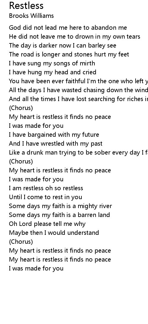 My heart is restless it finds no peace |