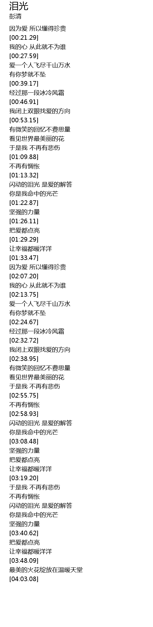 | [02:59.56] | shǎn dòng de lèi guāng shì ài de jiě dá |