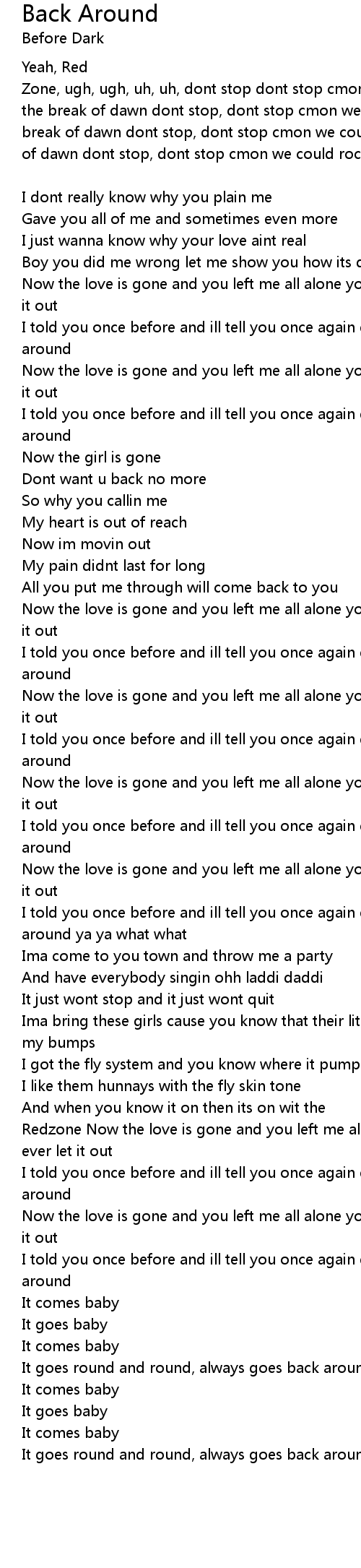 Redzone Now the love is gone and you left me all alone you told me you wouldnt ever let it out |