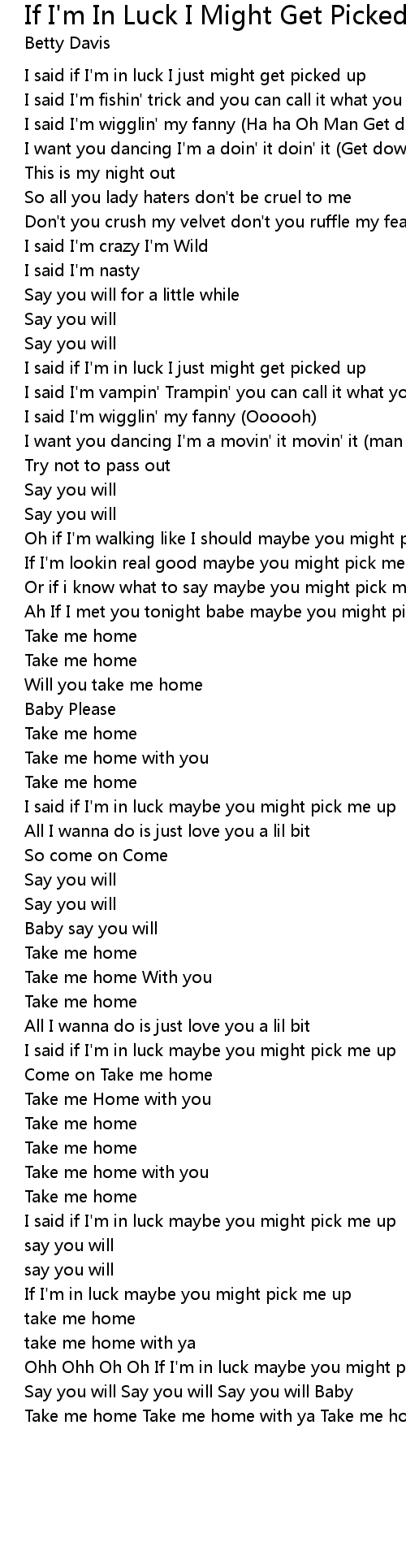 Ohh Ohh Oh Oh If I'm in luck maybe you might pick me up |