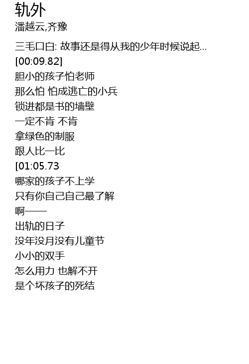 | [00:06.01] | sān máo kǒu bái: gù shì hái shì de cóng wǒ de shào nián shí hòu shuō qǐ... |
