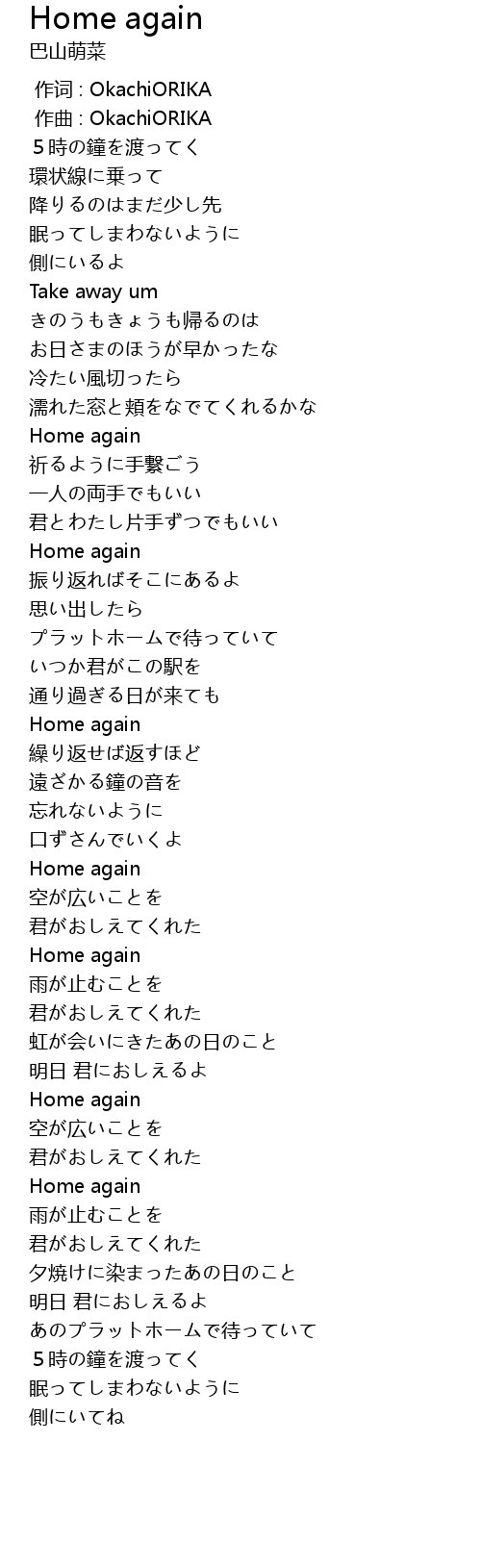 作词 : OkachiORIKA |