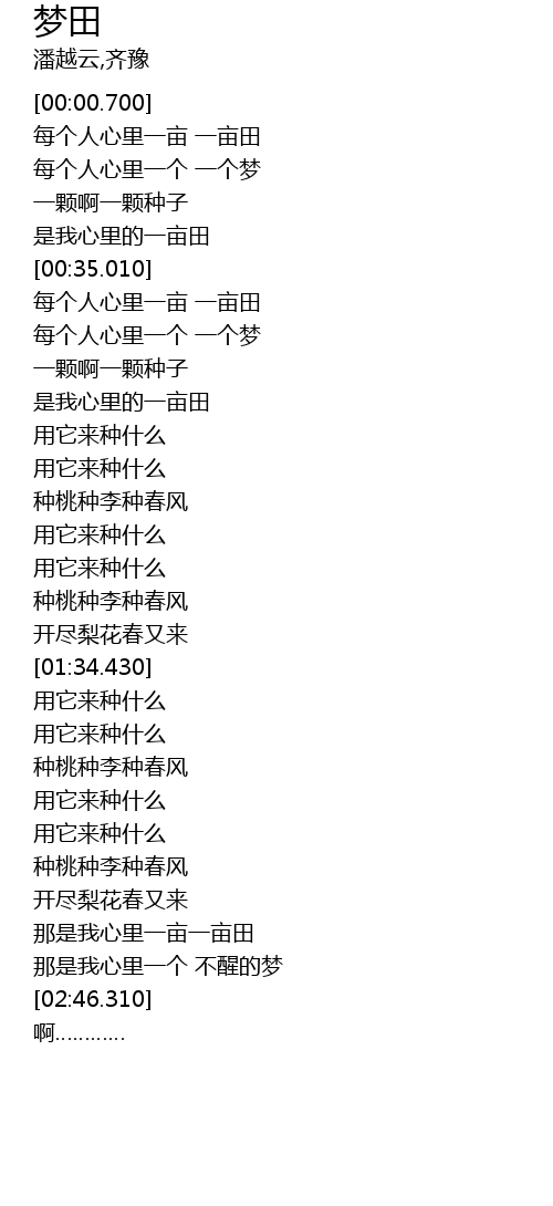 | [00:37.440] | 每个人心里一亩 一亩田 |