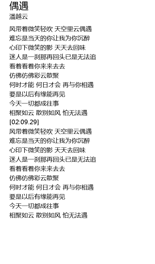 | [02:20.68] | 风带着微笑轻吹 天空里云偶遇 |