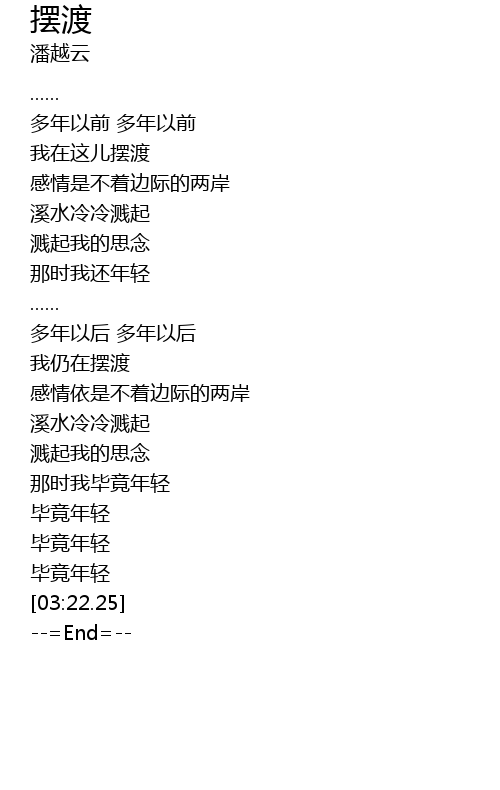 | [02:15.30] | 我仍在摆渡 |