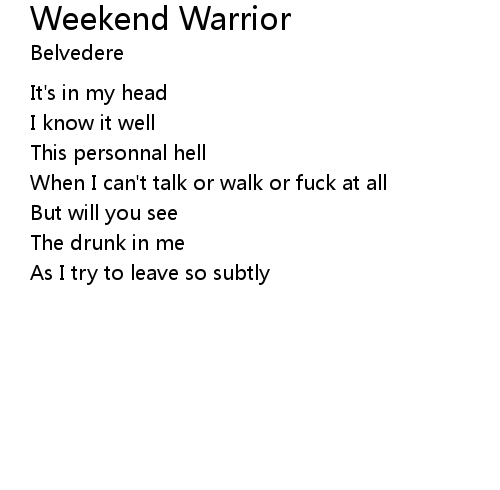 | Song | Weekend Warrior |