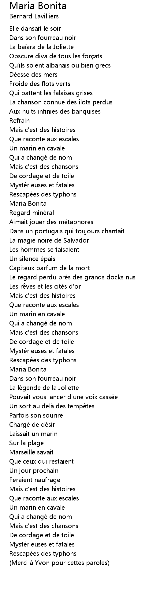 | Merci a Yvon pour cettes paroles |