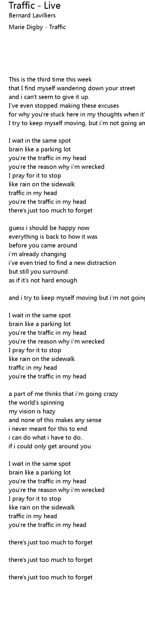 Traffic - Live Lyrics
