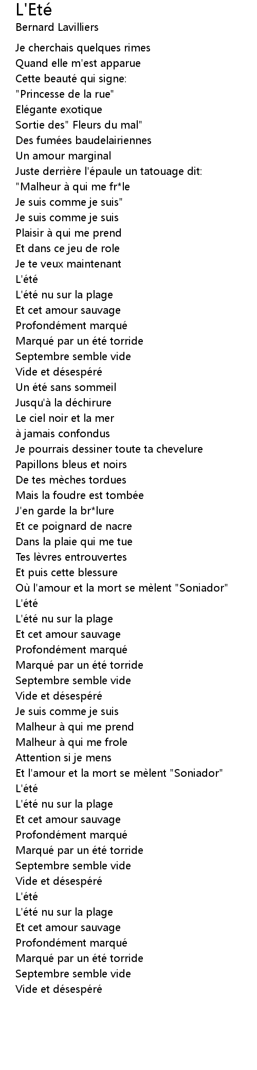 | [03:14.71] | L'é té nu sur la plage |