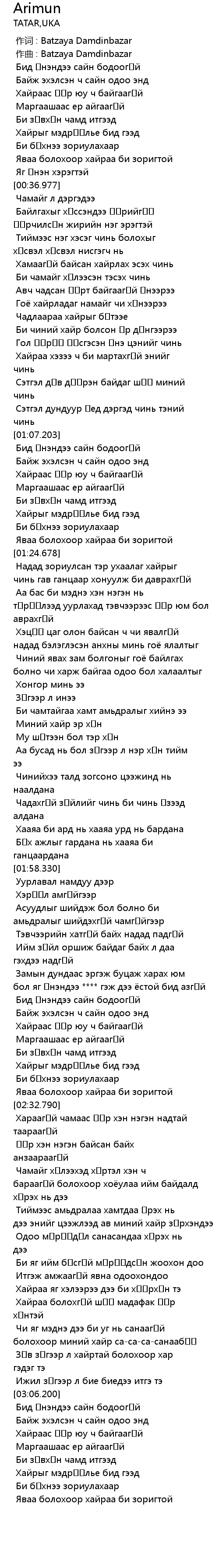 作词 : Batzaya Damdinbazar |