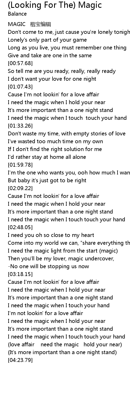 | [01:24.17] | I need the magic when I touch touch your hand |