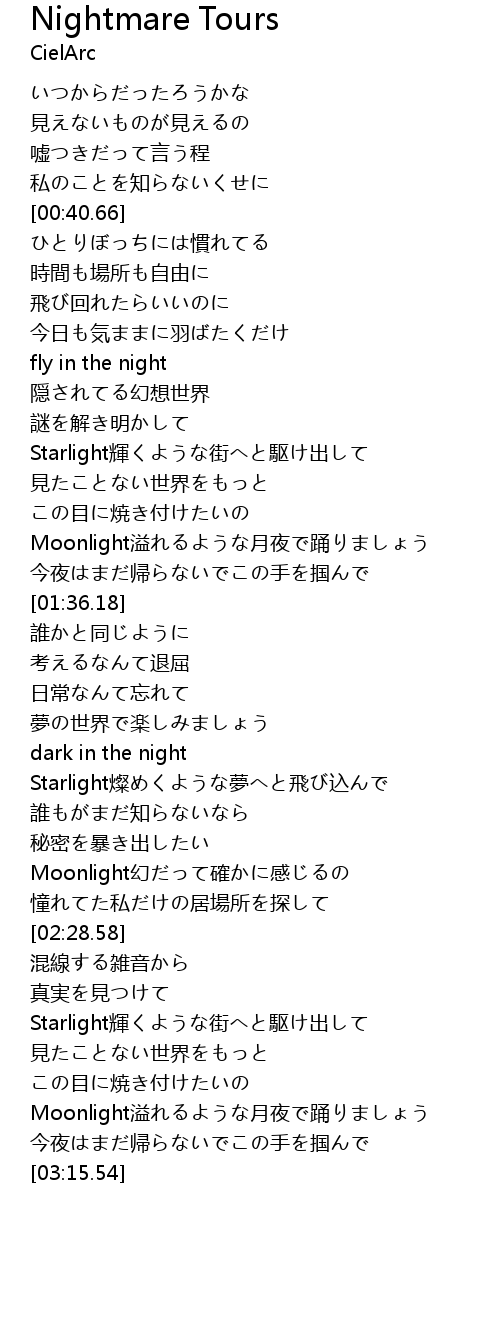 | [00:57.44] | fly in the night |