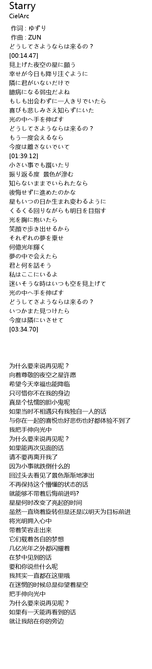 | [03:14.76] | どうしてさようならは来るの? |