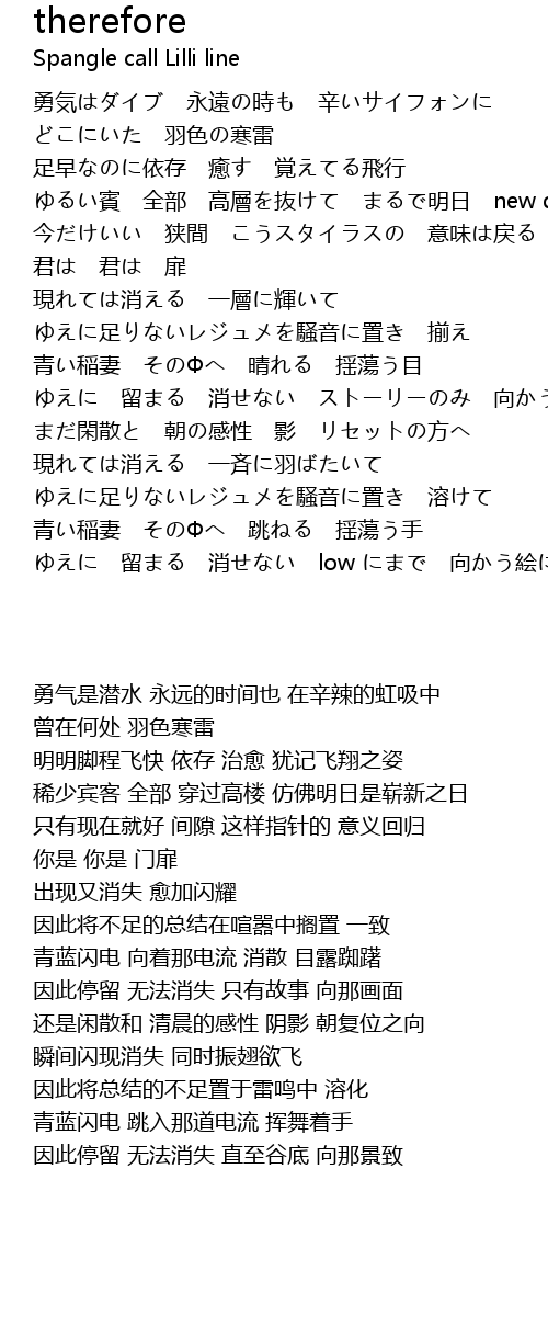 | [03:09.00] | 青い稲妻 そのΦへ 跳ねる 揺蕩う手 |