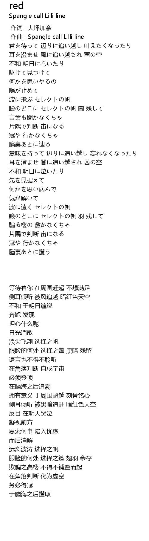 | [00:01.000] | zuò qǔ : Spangle call Lilli line |
