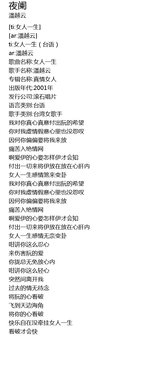 | [00:11.37] | 歌手类别:台湾女歌手 |