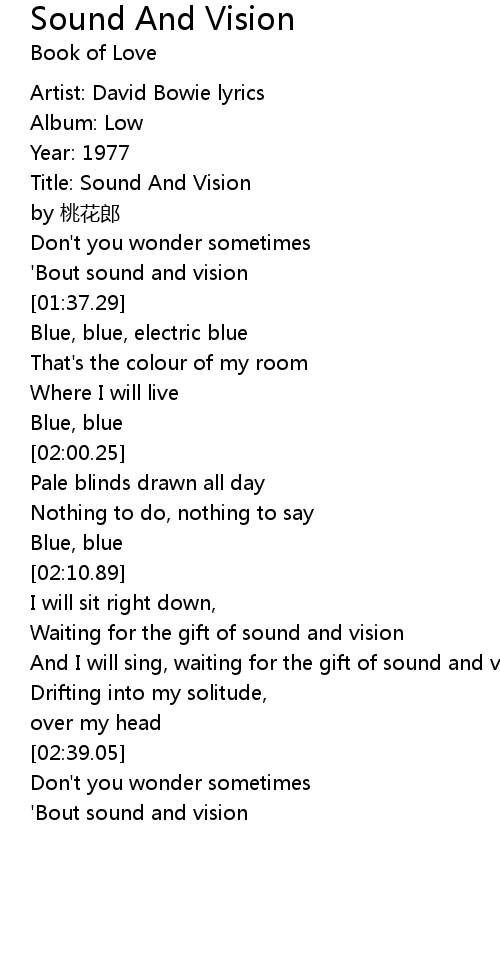 | [02:19.39] | Waiting for the gift of sound and vision |